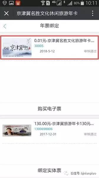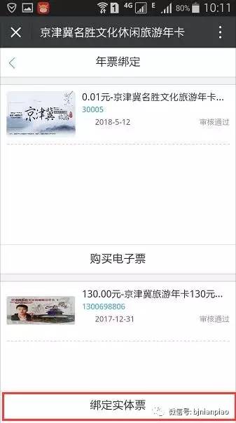 点击“年票绑定“,“绑定实体票”进行绑定。