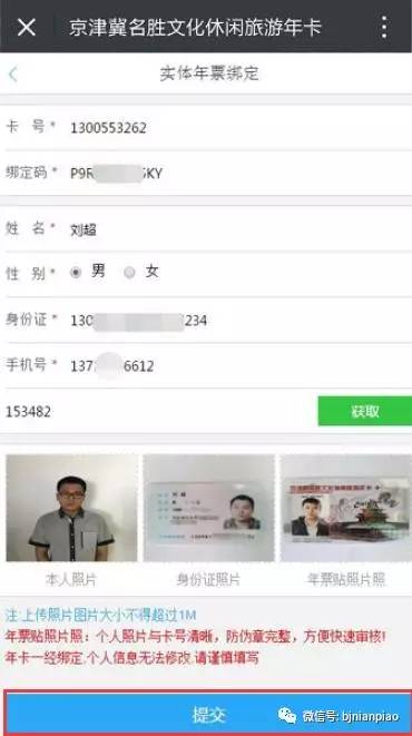 填写完整资料点击“提交”进行绑定,避免审核失败 上传照片时