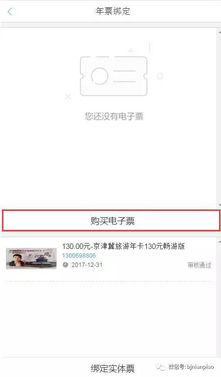 点击“购买电子票“,点击已经购买的“电子年票”进行绑定。