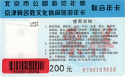 200元一张的公园游览年票与"京津冀名胜文化休闲旅游年卡"联合使用,不但可游览19家市内公园,还可适用古崖居、航空博物馆、等周边的121家名胜风景区,且办理时无身份限制;