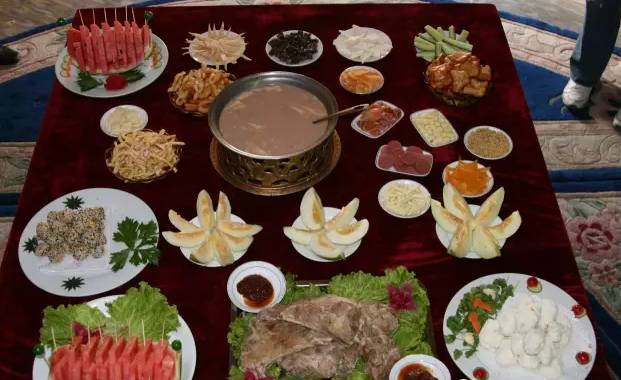 奶制品和牛羊肉是典型蒙族饮食,手把肉、烤全羊不可不尝。原始的蒙族饮食“全羊席”“诈马宴”更是款待贵宾的最高盛宴,配以营养丰富的奶茶、黄油、奶豆腐、炒米,醇厚香甜的奶酒都会让您胃口大开。