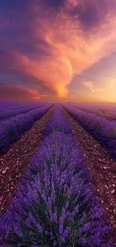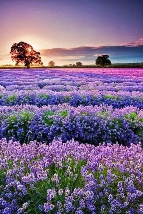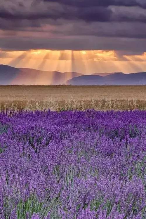 普罗旺斯暮色:夕阳与红霞漫天散开,光影糅合大片花海,只能用震撼形容了!银色、紫色、金色、绿色、红色层次分明,胜似天上人间!
