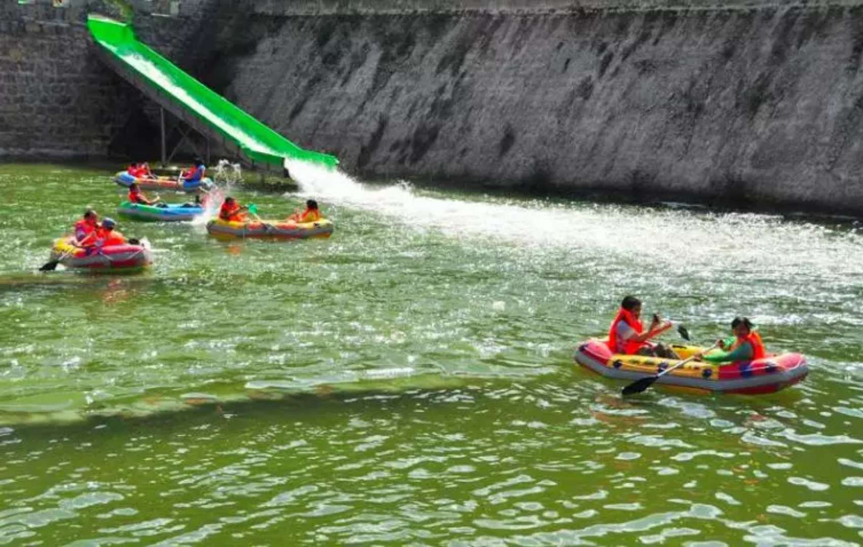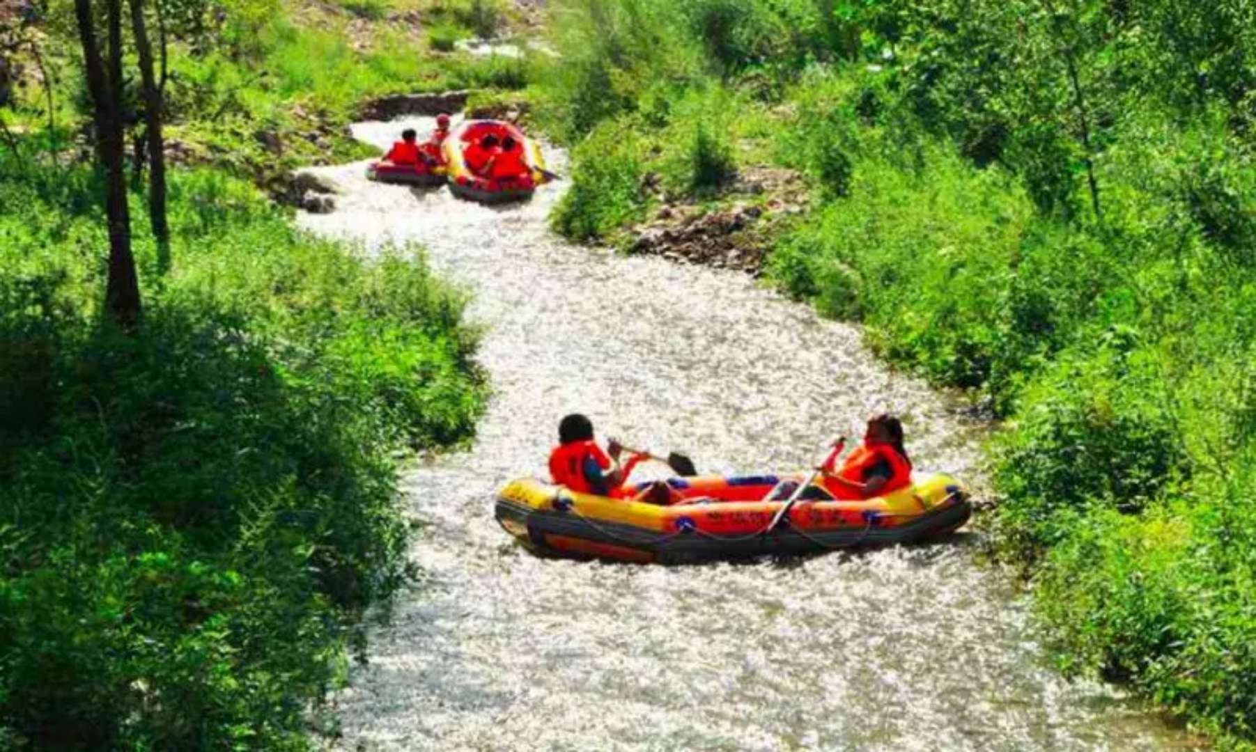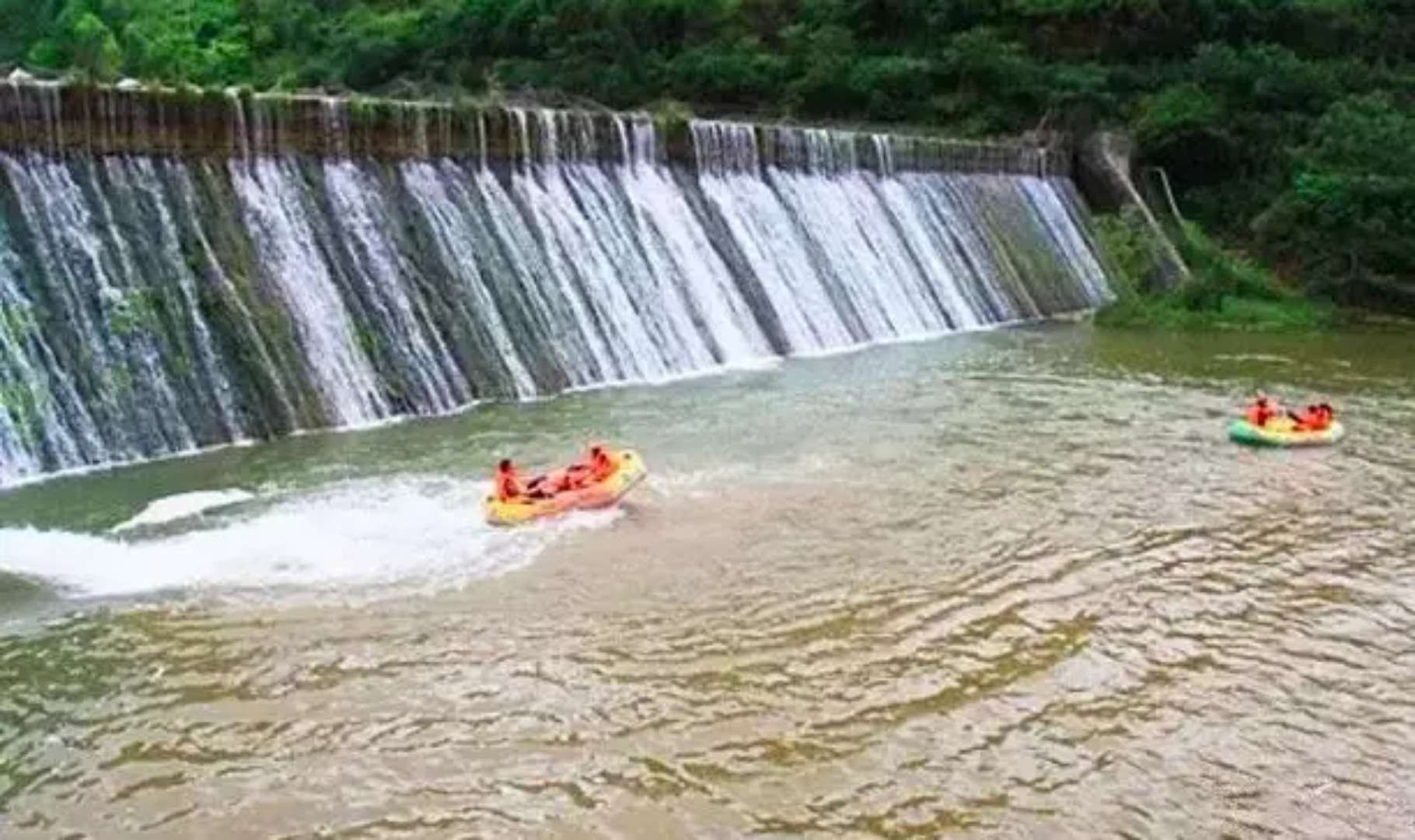 险溢河漂流地处石家庄平山县北冶乡,漂流全线长2000米,起点处仙浴湖水域面积4万多平米,四周山环水绕,绿树婆娑。水流自长70多米,高10余米的溢水坝倾泻而下,形成一道气势壮观的瀑布,碎玉四溅,银珠轻扬。