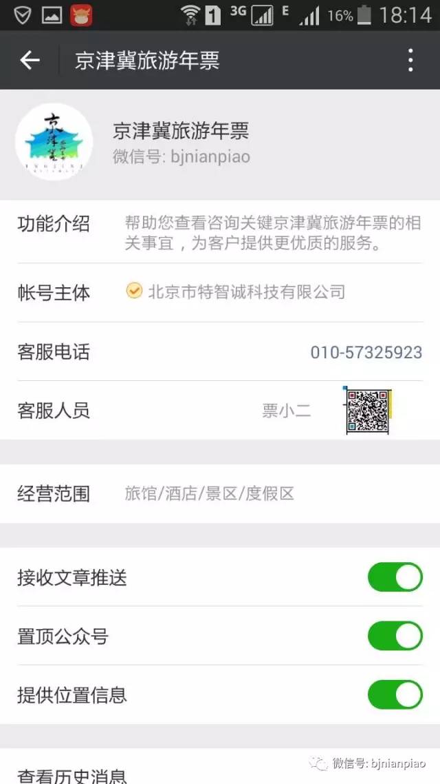 打开微信添加朋友,搜索公众号“京津冀旅游年票”或扫二维码,关注公众号。